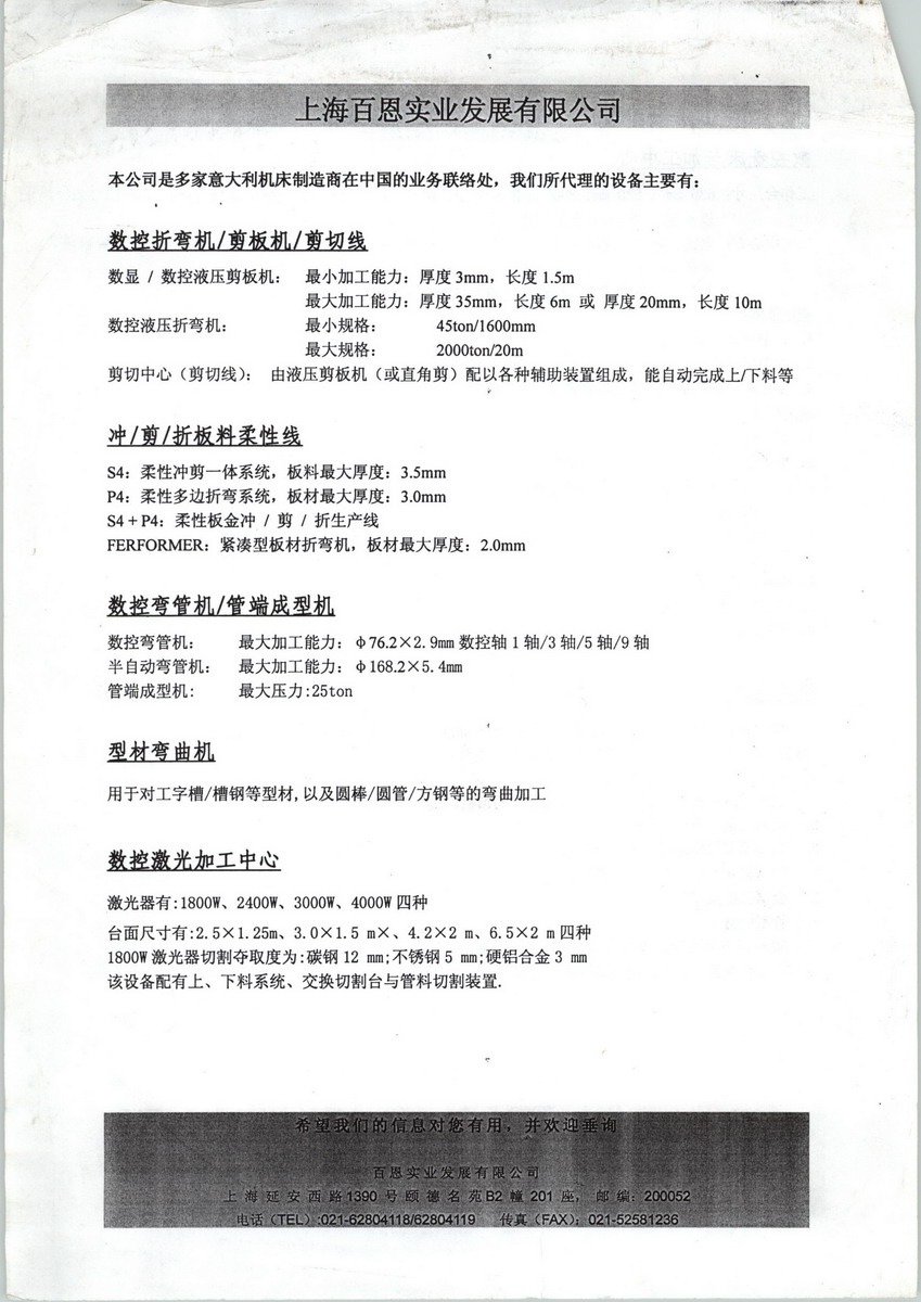上海百恩實業(yè)發(fā)展有限公司成立于1995年,注冊資金50萬人民幣。旗下?lián)碛猩虾0俣髦埔聫S、邦天貿(mào)易有限公司、BOON GMBH(百恩德國分公司)三家企業(yè)。通過10多年來的努力,我們已經(jīng)成為一家集生產(chǎn)及貿(mào)易相結(jié)合的企業(yè),也得到業(yè)界客戶的廣泛認(rèn)可。 上海百恩制衣廠成立于九十年代初,專營各類制服的設(shè)計與生產(chǎn)。公司在德國的關(guān)聯(lián)機(jī)構(gòu)BOON GMBH是我們的信息源泉,收集歐洲最新的職業(yè)裝潮流信息,使我們的設(shè)計更具時尚感,更國際化的各類職業(yè)制服.我們的產(chǎn)品深受客戶好評,特別是在促銷專柜美容師接待小姐及OFFICE制服的設(shè)計與制作方面, 在業(yè)內(nèi)受到肯定,眾多的客戶包括CHRISTIAN DIOR, CHANEL,L’OREAL,BIOTHERM,ESTEE LAUDER,KANEBO,ELIZABETH ARDEN等眾多知名品牌。我司同時也開拓海外市場,先后已有多家海外化妝品公司與我司合作,例如:CHANEL 新加坡公司BIOTHERM韓國公司,ELIZABETH ARDEN臺灣公司等,均保持著良好的長期合作關(guān)系。公司的設(shè)計制版主板師受訓(xùn)于日本MODE時裝學(xué)院,能準(zhǔn)確把握客戶的設(shè)計要求并通過款式板型較完美地體現(xiàn)設(shè)計意圖。 邦天貿(mào)易有限公司成立于2004年,公司具備各類產(chǎn)品的進(jìn)出口權(quán),擁有一批專業(yè)外貿(mào)進(jìn)出口人員。公司在德國的關(guān)聯(lián)機(jī)構(gòu)BOON GMBH是我們的窗口,歐洲多家著名供應(yīng)商將我們作為他們在中國的聯(lián)絡(luò)機(jī)構(gòu),全權(quán)負(fù)責(zé)在中國市場產(chǎn)品的銷售或采購。其中進(jìn)口產(chǎn)品銷售主要包括金屬加工行業(yè)的意大利GASPARINI SPA、SALVAGNINI SPA、RAINER SRL、SIMSAV SPA、PRAIMA SPA等大型專業(yè)設(shè)備的供應(yīng)商。出口產(chǎn)品主要包括各種石材及為意大利大型超市進(jìn)行相關(guān)日用品的配套。 德國的關(guān)聯(lián)機(jī)構(gòu)BOON GMBH作為百恩公司在歐洲的聯(lián)絡(luò)處及窗口,通過BOON GMBH很多歐洲著名企業(yè)可以將他們的產(chǎn)品銷往中國也從中國市場找尋到他們所需要的產(chǎn)品。