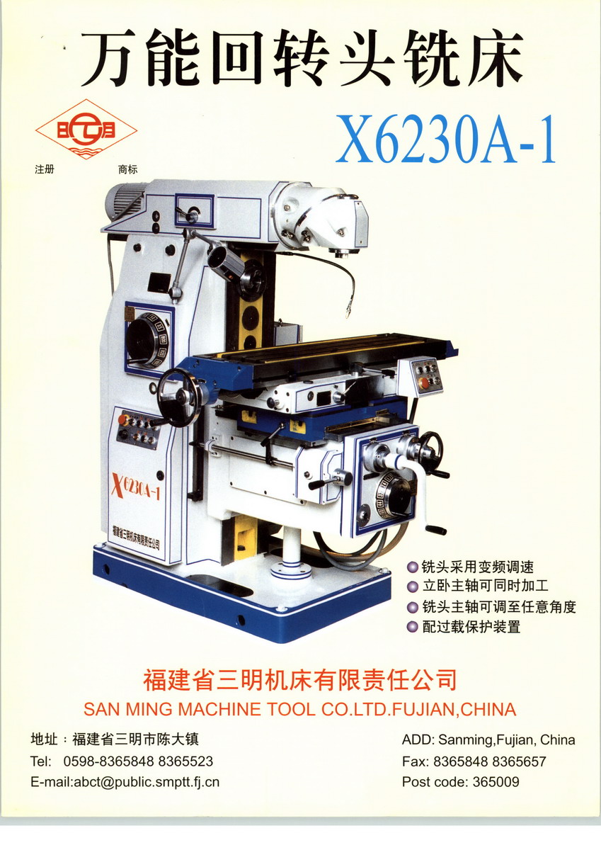 福建省三明機(jī)床有限責(zé)任公司創(chuàng)建于1965年8月,是原機(jī)械部定點(diǎn)生產(chǎn)銑床專業(yè)廠家,原名為福建省三明機(jī)床廠,1997年改制為有限責(zé)任公司。升降臺(tái)系列銑床產(chǎn)品通過了CE認(rèn)證。2001年公司通過了ISO9001質(zhì)量管理體系認(rèn)證。2006年獲得 福建省名牌產(chǎn)品稱號,2007年納入福建省高新技術(shù)企業(yè), 2008年11月被評為國家級高新技術(shù)企業(yè)。公司經(jīng)過40多年的發(fā)展,目前已具有生產(chǎn)多系列銑床產(chǎn)品能力。主要有:一、萬能升降臺(tái)類銑床,含工作臺(tái)寬300mm、320mm、350mm,立、臥及回轉(zhuǎn)頭類萬能升降臺(tái)銑床(含數(shù)控);二、工作臺(tái)面積2*10m2以下各類龍門與柱式平面銑床;三、立、臥加工中心;四、龍門鏜銑床及五面體加工中心;五、普通及數(shù)控落地鏜銑床;六、普通及數(shù)控專用機(jī)床等。2007年我司承接省科技廳重大項(xiàng)目《TX57140-350高剛度龍門式立臥銑鏜五面加工中心》,《MGK7160四軸數(shù)控精密磨床及關(guān)鍵技術(shù)的開發(fā)與應(yīng)用》,已經(jīng)過專家組驗(yàn)收并投放市場?!按蟪叽缇匦纹矫婀鈱W(xué)零件高精度磨床”是2009年國家“863”重大科技專項(xiàng)之一。我司銑床產(chǎn)品擁有“日月牌” 與“三J牌”兩種注冊商標(biāo)。三明機(jī)床信守“求精創(chuàng)新、客戶滿意”的宗旨竭誠為社會(huì)各界客戶服務(wù)。