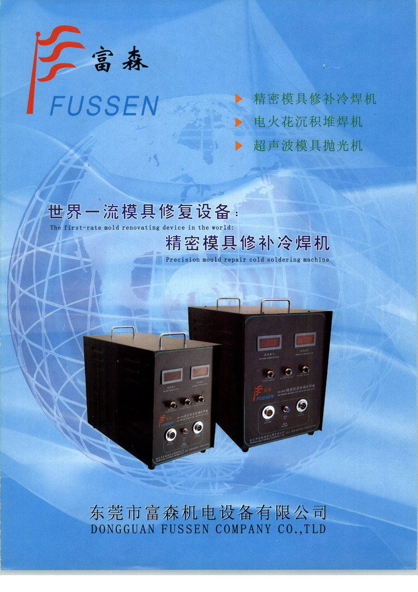 東莞市富森機電設備有限公司是國內首家引進德國領先冷焊技術機構之一,在國際制造業(yè)名城----中國東莞市已率先設立冷焊設備組裝加工生產基地,F(xiàn)USSEN牌冷焊設備在歐美地區(qū)已廣泛應用到各行各業(yè),目前在中國還屬新興科技產業(yè),富森機電設備有限公司自2005年開展中國區(qū)域業(yè)務以來,已迅速由東莞輻射至全國各省市形成以東莞為核心覆蓋全國的營銷網絡,為眾多制造企業(yè)提供匹配冷焊設備,同時為企業(yè)降低了大量的生產成本,保障了企業(yè)可持續(xù)發(fā)展。公司每年都積極參加國內各大型機電展覽會,極力拓展海內外市場,目前公司主營業(yè)務以精密模具修補冷焊機、金屬缺陷修補冷焊機、微束冷焊機為首席產品,以超聲波模具拋光機、氣動研磨工具為輔助產品,為各制造企業(yè)降低生產成本與提高運營效率提供最完善的解決方案。FUSSEN牌冷焊機應用范圍包括:電子、電氣設備、電力、通信、模具、汽車、機車、飛機、造船、鑄造機械等制造企業(yè)。公司秉承團結、奮進、務實、精心、創(chuàng)新發(fā)展的思想理念,以客為尊以技術領先為導向與廣大客商建立長久密切合作關系,并長期提供技術支持.富森本公司的產品精密模修補冷焊機,是利用高頻電火花放電原理,對模具進行無熱堆焊,以保證模具的完好性,也可以利用強化功能對模具進行強化處理,來實現(xiàn)模具的耐磨性、耐熱性、耐蝕性等等。以及產品對模具的要求不斷提高,越來越多的高端精密模具投入使用,在模具不斷的使用過程中,不可避免的會出現(xiàn)對模具的傷害,諸如磨損、劃傷、針孔、裂紋以及缺損等缺陷。傳統(tǒng)的修復設備再一定程度上,幫助客戶對模具進行修復以節(jié)約成本。但也不可避免的出現(xiàn)了一些問題,如修復模具后造成模具變形、硬度降低、內應力、沙眼、損傷甚至報廢。精密模具修補冷焊機,有"模具修復專家"之稱。專用于修復各類金屬設備、機件、模具等。廣泛用于模具制造業(yè)、航空航天工業(yè)、汽車制造修理業(yè)、造船工業(yè)、機械工業(yè)、鑄造工業(yè)、電力工業(yè)、化學工業(yè)等領域。