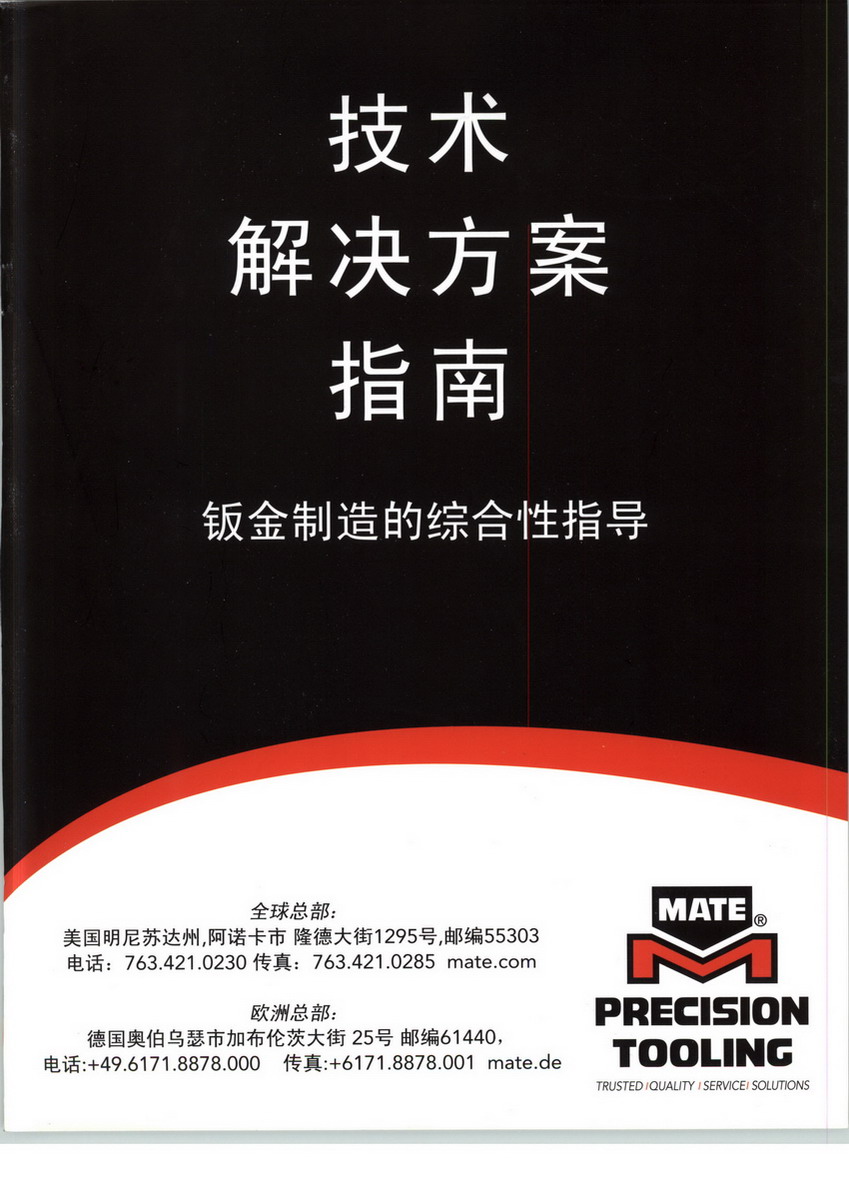 美國MATE模具公司成立于1962年??偛课挥诿绹髂崽K達(dá)州,阿諾卡(ANOKA),靠近五大湖區(qū)。工廠建筑面積為大約30,000多平方米,共有五百多名員工,年銷售額超過80,000,000.00美元。數(shù)控沖床模具是我們唯一的業(yè)務(wù)。另外,我們在德國,英國建有分支工廠,在馬來西亞,瑞典,中國設(shè)有銷售代表處,在全球65個(gè)國家有代理商。公司有一大批專業(yè)工程師為客戶提供高質(zhì)量的技術(shù)服務(wù)。