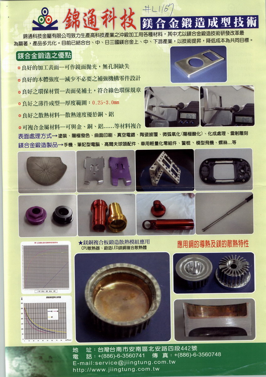 錦通科技金屬股份有限公司致力生產高科技產業(yè)之沖鍛加工用各種材料,其中尤以鎂合金鍛造技術研發(fā)改革最為顯著,產品多元化。目前已結合臺、中、日三國鎂合金上、中、下游產業(yè),以技術提升,降低成本為共同目標。