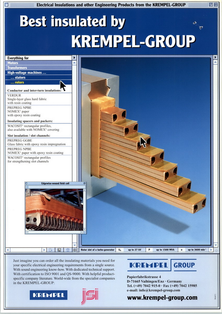 The KREMPEL-GROUP is an independent manufacturer of high quality semi-finished products and a leading global system supplier of modern materials. Our electrical insulations, composites, solar and electronic materials, as well as special laminates, enjoy an excellent reputation worldwide and we are global market leaders in many of these sectors. We employ over 1,000 staff in our production facilities in Germany, the UK, Poland and China. Distribution companies in Austria, the UK, the USA, Thailand and China assure fast service locally. Global player with tradition.The KREMPEL-GROUP offers considerable know-how in working with paper, films, fibres, mica, resins, adhesives and plastics. The group has well-established technologies for papermaking, laminating, impregnating, coating, winding, forming, pressing, moulding, machining, braiding, knitting and weaving.To provide customers with the best possible service, the KREMPEL-GROUP is organised in different operating divisions. This enables us to provide specialised support as well as mature products for highly specific applications.Electrical insulations have ensured operational safety in electrical engineering for many decades.olar materials insulate and protect solar modules reliably against environmental effects and UV radiation.Composites provide optimum design possibilities for numerous constructions.Electronic materials are the basis for flexible printed circuits and intelligent SmartCards.Special laminates and special films insulate, protect or separate with convincing properties.Thermal insulations protect from the heat in industrial, automotive and household applications.