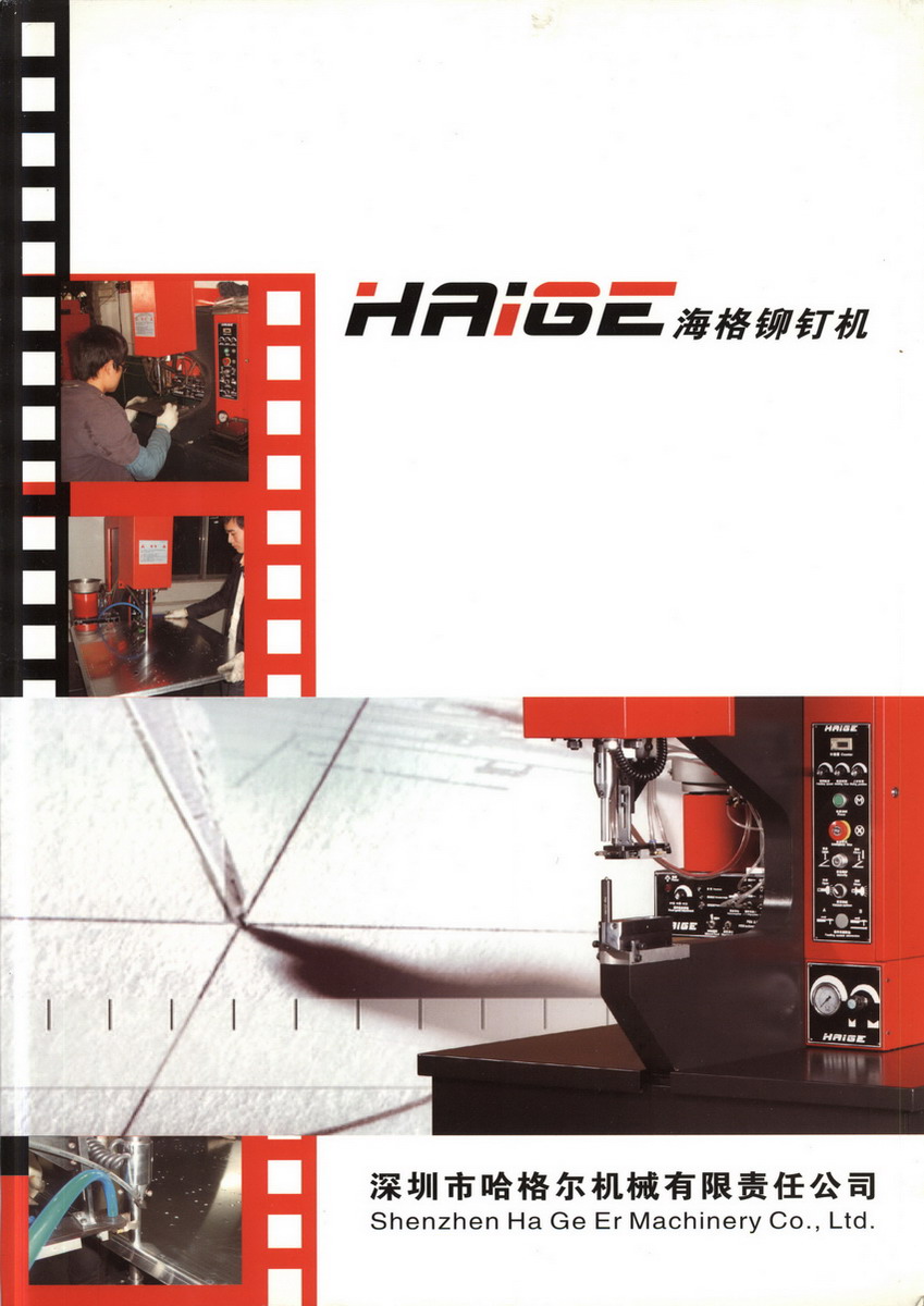 深圳市哈格爾機(jī)械有限責(zé)任公司是一家提供先進(jìn)的自扣式緊固件插接技術(shù)和設(shè)備的公司,有著杰出的插接、鉚接、無(wú)鉚連接和復(fù)雜鉚接解決方案。我們致力于生產(chǎn)鈑金加工設(shè)備的自動(dòng)化配套解決方案。我們的產(chǎn)品包括:全自動(dòng)液壓鉚釘機(jī)、全自動(dòng)數(shù)控沖床上下料機(jī)、鈑金非標(biāo)自動(dòng)化設(shè)備、高性能折床模具、高標(biāo)準(zhǔn)的壓鉚螺絲系列。哈格爾機(jī)械生產(chǎn)的機(jī)器和工具幾乎可插接您所能想像到的所有型號(hào)和尺寸的自扣式緊固件。而且,我們不斷地創(chuàng)新,使所有型號(hào)和尺寸的自扣式緊固件可插接到所有的鈑材中去。無(wú)論是在工程設(shè)計(jì)、生產(chǎn)、技術(shù)服務(wù)或銷售和市場(chǎng)營(yíng)銷中,海格都可以解決您所碰到的所有插件工藝上的難題,我們豐富的經(jīng)驗(yàn)和專業(yè)的技術(shù)是無(wú)人能及的。Shenzhen Hagel Machinery Co., Ltd. is a provider of advanced plug from the button fastener technology and equipment company, with outstanding plug, riveting, no stainless steel riveted connections and complex solutions. We are committed to the production of automated sheet metal processing equipment, complete solutions. Our products include: automatic hydraulic riveting machine, automatic loading and unloading of CNC punch press machines, sheet metal non-standard automation equipment, high-performance folding bed die, a high standard of pressure riveting screws series. Chuck Hagel, the production of machines and machine tools plug as you can imagine almost all models and sizes from the snap fasteners. Furthermore, we continue to innovate, so that all types and sizes received from the button fasteners can be inserted in to all the sheet metal. Whether in engineering design, production, technical service or sales and marketing, the Haig can be solved for all plug-ins you encounter problems on the technology, our rich experience and professional skills are unmatched.