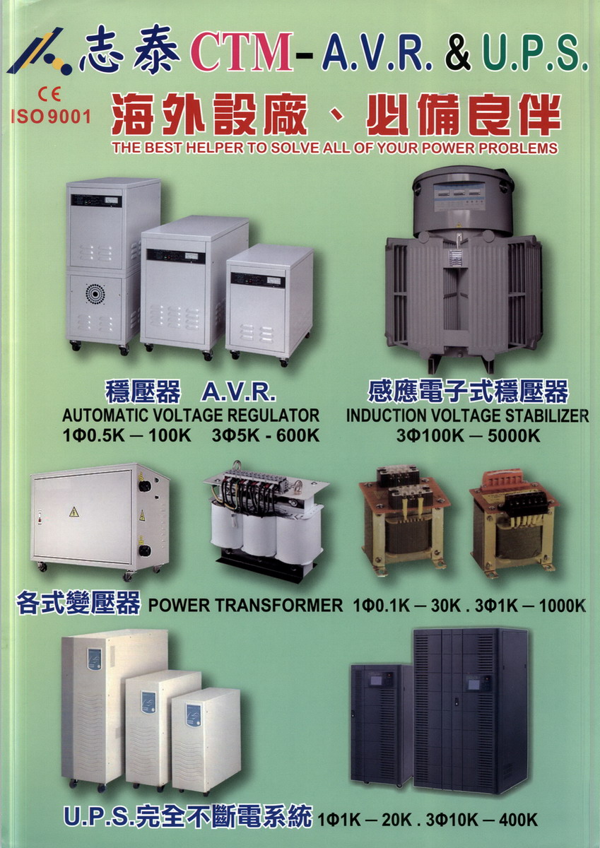 志泰/宇晟科技有限公司係從事電源設(shè)備專業(yè)製造廠,公司經(jīng)營者更累積近二十年之專業(yè)技術(shù),主要提供油霧回收空氣清淨(jìng)機(jī)、油煙空氣淨(jìng)化機(jī)、切削液清淨(jìng)機(jī)、全自動(dòng)電壓穩(wěn)定器、各式變壓器及完全不斷電系統(tǒng) UPS....等專業(yè)設(shè)備,並經(jīng)由ISO-9001及CE認(rèn)證。累積多年的製造經(jīng)驗(yàn),志泰/宇晟公司向來以提供高品質(zhì)之產(chǎn)品及完善的售後服務(wù)為目標(biāo),除了積極投入開發(fā)設(shè)計(jì)之外,並且不斷由歐、美、日引進(jìn)新的技術(shù)與零件,以期提昇技術(shù)層次。志泰/宇晟期許能成為國內(nèi)電子、電機(jī)產(chǎn)業(yè)從自行研發(fā)、量產(chǎn)、行銷一貫化之產(chǎn)銷經(jīng)營為成功標(biāo)竿。