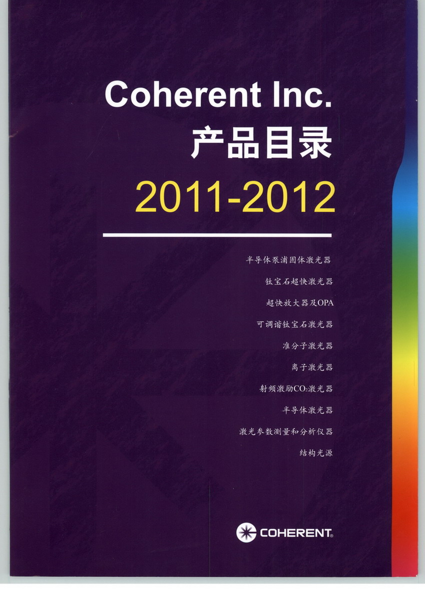現(xiàn)在,相干公司能夠提供更全面的激光器和激光參數(shù)測量產(chǎn)品,包括:氬/氪離子激光器、CO2 激光器(10.6μm、9.4μm、調(diào)Q、可調(diào)諧、單頻、THz源)、半導(dǎo)體激光器(375nm、405nm、635nm、780-980nm)、鈦寶石連續(xù)可調(diào)諧激光器、準(zhǔn)分子激光器、脈沖染料激光器、鈦寶石超快激光器及放大器、半導(dǎo)體泵浦固體激光器(1064nm、532nm、355nm、266nm)、功率計、能量計、光束質(zhì)量分析儀和波長計等。