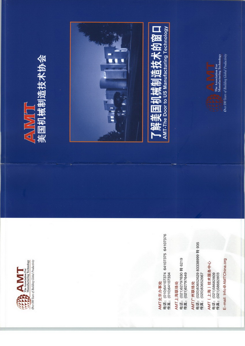 自一九零二年創(chuàng)立至今,經(jīng)過100年的不懈努力,目前已成為國(guó)際機(jī)床及機(jī)械制造行業(yè)的重要服務(wù)機(jī)構(gòu)?,F(xiàn)有會(huì)員385家,占美國(guó)機(jī)床行業(yè)總產(chǎn)值的85%以上。會(huì)員公司業(yè)務(wù)涉及各種機(jī)床、工具、夾具、設(shè)計(jì)、物料搬運(yùn)裝配、檢驗(yàn)、以及通訊和控制等。二十世紀(jì)九十年代,為適應(yīng)全球經(jīng)濟(jì)一體化的形勢(shì),美國(guó)機(jī)械制造技術(shù)協(xié)會(huì)(AMT)努力為會(huì)員企業(yè)開拓全球市場(chǎng)提供服務(wù)。更于一九九三年在中國(guó)開設(shè)了AMT北京辦事處,一九九八年在上海設(shè)立了代表處,2004年在廣州設(shè)立了廣州代表處并在上海設(shè)立了AMT技術(shù)服務(wù)中心。上述四機(jī)構(gòu)的建立,為美中機(jī)械制造行業(yè)的合作與美國(guó)機(jī)械產(chǎn)品進(jìn)入中國(guó)市場(chǎng),起到了積極的作用。進(jìn)入二十一世紀(jì)的今天,美國(guó)機(jī)械制造技術(shù)協(xié)會(huì)(AMT)通過全球七十多名工作人員的努力,通過多種專項(xiàng)服務(wù)、發(fā)行出版物、組織研討會(huì)等形式,幫助協(xié)會(huì)三百多家會(huì)員保持著本行業(yè)發(fā)展的領(lǐng)先地位。AMT的前身是美國(guó)機(jī)械制造技術(shù)協(xié)會(huì)(NMTBA)- National Machine Tool Builders' Association,創(chuàng)始與1902年。當(dāng)時(shí),金屬切割機(jī)床是唯一用于機(jī)械制造過程的設(shè)備,而其他作業(yè),如設(shè)計(jì),物料搬運(yùn),裝配,檢驗(yàn),試驗(yàn)和通訊,控制等,還都是手工操作。現(xiàn)在工廠作業(yè)已經(jīng)徹底改觀,機(jī)床與上述其他六個(gè)電子操縱的技術(shù)聯(lián)手結(jié)為一體。除此之外,新材料也不斷出現(xiàn)。基于這種事實(shí),從1998年起,AMT把她服務(wù)的產(chǎn)業(yè)范圍擴(kuò)大到整個(gè)機(jī)械制造系統(tǒng)工業(yè)。所有生產(chǎn)機(jī)器,相關(guān)設(shè)備,或用于某些耐用品生產(chǎn)過程的各種產(chǎn)品或軟件的單位,都可以成為AMT會(huì)員。此后,在AMT內(nèi)部又相繼成立了幾個(gè)產(chǎn)品專業(yè)組,以適應(yīng)這些會(huì)員業(yè)務(wù)發(fā)展的特殊需要。1991年,成立了激光系統(tǒng)產(chǎn)品組。接著,于1993年成立了工件夾持產(chǎn)品組。1994年又成立了由從事專門設(shè)備設(shè)計(jì)與制造公司組成的用戶自動(dòng)化系統(tǒng)組。鑒于國(guó)際市場(chǎng)日益重要,AMT開設(shè)了海外辦事處,為當(dāng)?shù)氐暮M庥脩籼峁┓?wù),同時(shí)也為AMT會(huì)員提供國(guó)際市場(chǎng)的信息。此外,AMT還擁有和主辦芝加哥國(guó)際機(jī)床展覽會(huì)(IMTS)。每逢雙數(shù)年在芝加哥舉辦一次。它是世界上最大的同類型展覽會(huì)之一,有十多萬(wàn)采購(gòu)人員來此與來自世界各地的1500家展商聚會(huì),領(lǐng)略當(dāng)今世界最精良的機(jī)械制造技術(shù)與產(chǎn)品。美國(guó)機(jī)械制造技術(shù)協(xié)會(huì)(AMT)始終致力于支持與加強(qiáng)美國(guó)機(jī)械制造行業(yè)的各項(xiàng)活動(dòng)。AMT的主要目標(biāo)是通過下述四種途徑來實(shí)現(xiàn)的。作為她所代表的行業(yè)代言人,并致力于使政府、公眾團(tuán)體與各界人士對(duì)本行業(yè)的充分理解。向會(huì)員提供有關(guān)下列方面的最新信息:技術(shù)發(fā)展,培訓(xùn)方法,經(jīng)濟(jì)狀況,貿(mào)易與市場(chǎng)。鼓勵(lì)實(shí)施更高的安全與技術(shù)標(biāo)準(zhǔn),推動(dòng)會(huì)員產(chǎn)品的技術(shù)進(jìn)步,改進(jìn)設(shè)計(jì),制造與銷售。收集與散發(fā)國(guó)際市場(chǎng)的信息,促進(jìn)會(huì)員產(chǎn)品在這些市場(chǎng)上的銷售,充當(dāng)與各國(guó)政府及國(guó)際行業(yè)組織對(duì)話的行業(yè)代言人。美國(guó)機(jī)械制造技術(shù)協(xié)會(huì)(AMT),北京辦事處及上海代表處的宗旨是:為中國(guó)用戶免費(fèi)提供美國(guó)機(jī)床廠家的產(chǎn)品和服務(wù)信息;介紹美國(guó)機(jī)械制造行業(yè)最新技術(shù)發(fā)展動(dòng)態(tài);促成中美兩國(guó)機(jī)械制造廠家結(jié)成聯(lián)盟;組織AMT會(huì)員來華參展;協(xié)助國(guó)內(nèi)企業(yè)和觀眾赴美參加和觀看每?jī)赡昱e辦一屆的美國(guó)芝加哥國(guó)際機(jī)械制造技術(shù)展。