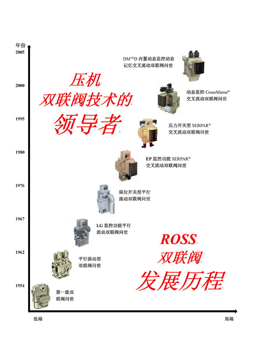 ROSS CONTROLS在氣動安全閥門領(lǐng)域享有極高的聲譽。上海盧斯氣動元件有限公司是ROSS CONTROLS在中國的子公司,成立于2005年,全面負責(zé)ROSS CONTROLS在中國地區(qū)的一切事務(wù)。 ROSS氣動閥門品種達到5000多種,包括電磁控制閥、空氣控制閥、手動閥、雙聯(lián)閥等等,全面應(yīng)用于多種工業(yè)領(lǐng)域,如鋼鐵、鍛壓、玻璃制瓶、原鋁制造等。ROSS在氣動閥門的設(shè)計研究開發(fā)方面也一直處于世界先進行列,90多年來在空氣控制技術(shù)上做出了巨大的革新,作為ROSS代表性產(chǎn)品的雙聯(lián)閥,更是被不斷完善、推陳出新,以求為用戶提供最為安全優(yōu)質(zhì)的服務(wù)。