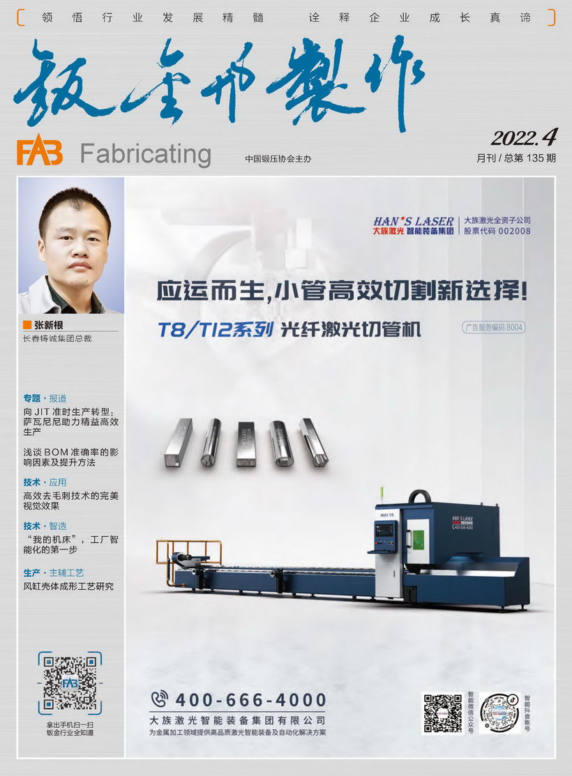 《鈑金與制作》雜志是中國(guó)鍛壓協(xié)會(huì)主辦的目前國(guó)內(nèi)惟一一本面向鈑金制作、管型線材加工行業(yè)的綜合性高端雜志。憑借中國(guó)鍛壓協(xié)會(huì)多年服務(wù)鈑金和管型線材行業(yè)的優(yōu)勢(shì),努力搭建供應(yīng)商與用戶企業(yè)間的信息平臺(tái),做好政府、高校、科研院所及企業(yè)間溝通的橋梁。