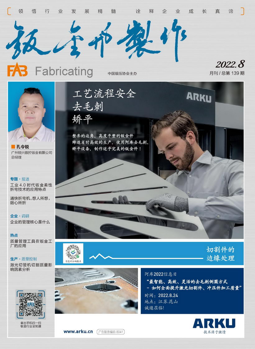 《鈑金與制作》雜志是中國(guó)鍛壓協(xié)會(huì)主辦的目前國(guó)內(nèi)惟一一本面向鈑金制作、管型線材加工行業(yè)的綜合性高端雜志。憑借中國(guó)鍛壓協(xié)會(huì)多年服務(wù)鈑金和管型線材行業(yè)的優(yōu)勢(shì),努力搭建供應(yīng)商與用戶企業(yè)間的信息平臺(tái),做好政府、高校、科研院所及企業(yè)間溝通的橋梁。