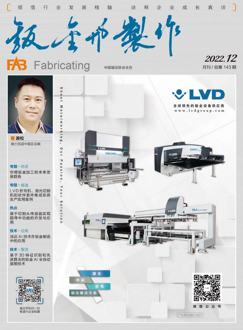 《鈑金與制作》雜志是中國鍛壓協(xié)會主辦的目前國內(nèi)惟一一本面向鈑金制作、管型線材加工行業(yè)的綜合性高端雜志。憑借中國鍛壓協(xié)會多年服務(wù)鈑金和管型線材行業(yè)的優(yōu)勢,努力搭建供應(yīng)商與用戶企業(yè)間的信息平臺,做好政府、高校、科研院所及企業(yè)間溝通的橋梁。