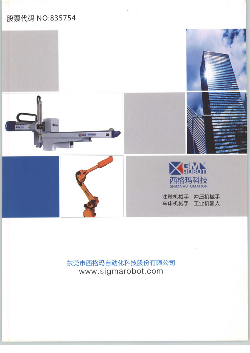東莞市西格瑪自動化科技股份有限公司為致力于射出成型注塑機(jī)之專用機(jī)械手臂的研發(fā)、生產(chǎn)、銷售及服務(wù)的高新技術(shù)產(chǎn)業(yè)。 產(chǎn)品內(nèi)容包括:全伺服式機(jī)械手、橫走式機(jī)械手、縱走式機(jī)械手、斜臂式機(jī)械手、立式注塑機(jī)專用機(jī)械手等十大系列機(jī)械手,可搭配15噸到4000噸的各型射出成型注塑機(jī),為您量身打造最佳自動化解決方案;產(chǎn)品廣泛應(yīng)用于:家電業(yè)、計算機(jī)及周邊產(chǎn)業(yè)、光電業(yè)、化妝品包裝、汽車及其零部件、事物機(jī)器零件業(yè)、精密齒輪業(yè)、PET瓶胚業(yè)、家庭日用品業(yè)、手機(jī)通訊業(yè)、醫(yī)療用品業(yè)、食品包裝業(yè)……等等。