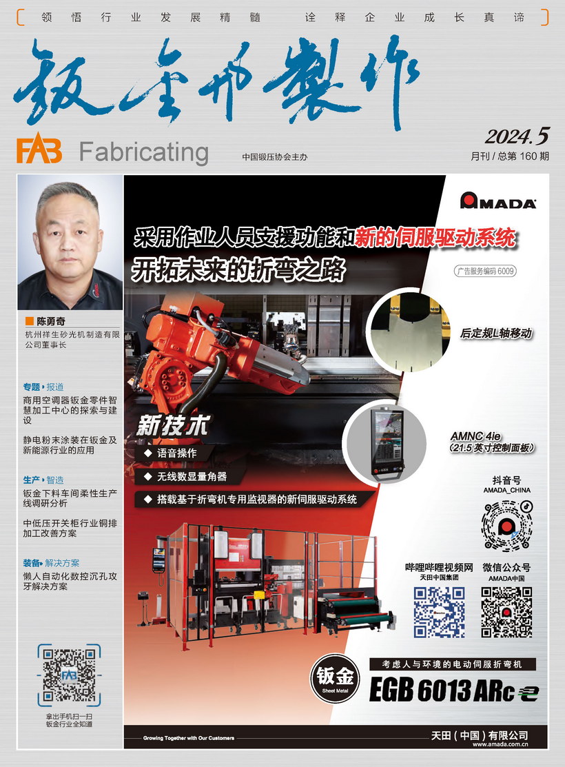 《鈑金與制作》雜志是中國鍛壓協(xié)會主辦的目前國內(nèi)惟一一本面向鈑金制作、管型線材加工行業(yè)的綜合性高端雜志。憑借中國鍛壓協(xié)會多年服務(wù)鈑金和管型線材行業(yè)的優(yōu)勢,努力搭建供應(yīng)商與用戶企業(yè)間的信息平臺,做好政府、高校、科研院所及企業(yè)間溝通的橋梁。