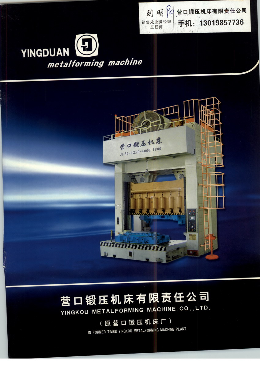 公司前身是營口鍛壓機床廠,始建于1949年,與共和國同齡,是原國家機械工業(yè)部重點生產(chǎn)壓力機專業(yè)廠,有著多年生產(chǎn)機械壓力機歷史的老廠?,F(xiàn)已走過60年的光輝歷程,長期以來,在市委、市政府及有關部門的正確領導和大力支持下,在幾代鍛壓人的共同努力下,取得了長足的發(fā)展。尤其是2001年8月成功改制,具備了現(xiàn)代企業(yè)制度的民營股份制企業(yè)。企業(yè)在內(nèi)部積極整改,充分利用理順人力物力資源,更新增加生產(chǎn)設備,提高生產(chǎn)能力。外部更新經(jīng)營理念,整頓銷售市場,積極拓寬發(fā)展銷售渠道。內(nèi)部凝聚力和外部競爭力得到空前提升,使企業(yè)重新煥發(fā)了青春。