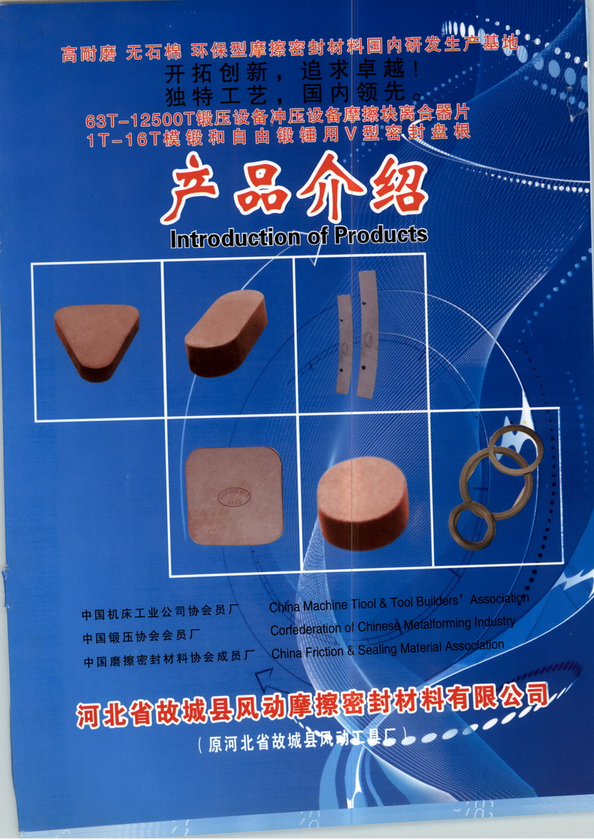 我公司主要生產(chǎn)壓力機(jī)磨擦塊、離合器片。產(chǎn)品主要銷往各主機(jī)廠和汽車制造及鍛造沖壓行業(yè),特別是V型石棉橡膠盤根和聚四氟乙烯盤根及密封耐熱、耐磨產(chǎn)品,深受船舶工業(yè)部479廠、航天工業(yè)部3257廠、航空工業(yè)部352廠、430廠等廠家的好評(píng)。