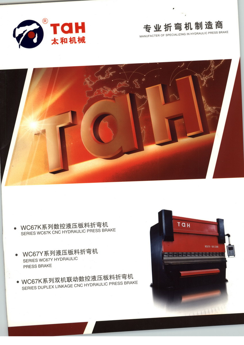 公司擁有自營(yíng)進(jìn)出口權(quán),所有產(chǎn)品均獲出口許可證,生產(chǎn)的“太和牌”QC12K、QC12Y、Q11、QC11Y系列剪板機(jī);WC67K、WC67Y系列液壓數(shù)控折彎?rùn)C(jī);W11S、W11卷板機(jī);THW24S型材彎曲機(jī)暢銷全國(guó),遠(yuǎn)銷歐美,中東、南非、東南亞等三十多個(gè)國(guó)家和地區(qū)。所有產(chǎn)品廣泛適用于機(jī)械、飛機(jī)、汽車、電器、船舶、儀表、包裝、不銹鋼制品及裝潢等行業(yè)。