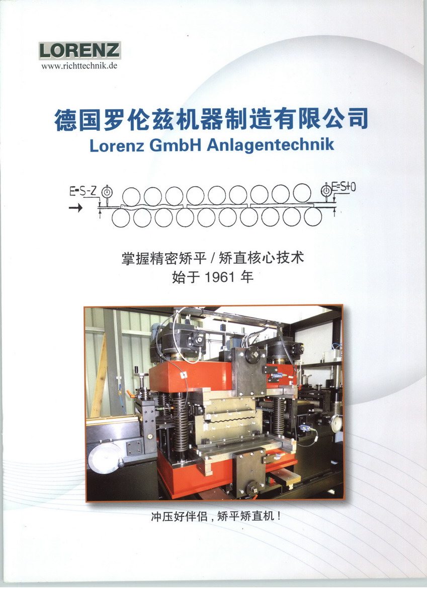 德國羅倫茲機(jī)器制造有限公司由H. Lorenz先生創(chuàng)立,專業(yè)生產(chǎn)19/21輥精密矯平設(shè)備, 9輥矯直裝置, 開卷機(jī)和收卷機(jī), 電動輥喂料器和橫向零件進(jìn)給裝置. 所有設(shè)備所需電氣,氣動和液壓控制裝置也有我們自己的特點. 是矯平矯直技術(shù)的創(chuàng)始人.公司擁有50多年矯平設(shè)備生產(chǎn)和研發(fā)經(jīng)驗. 從1961年開始,H.Lorenz先生就研發(fā)板材矯平技術(shù), 并將此技術(shù)先后介紹給兩家德國公司, 使這兩家公司開始了矯平設(shè)備的生產(chǎn)。
