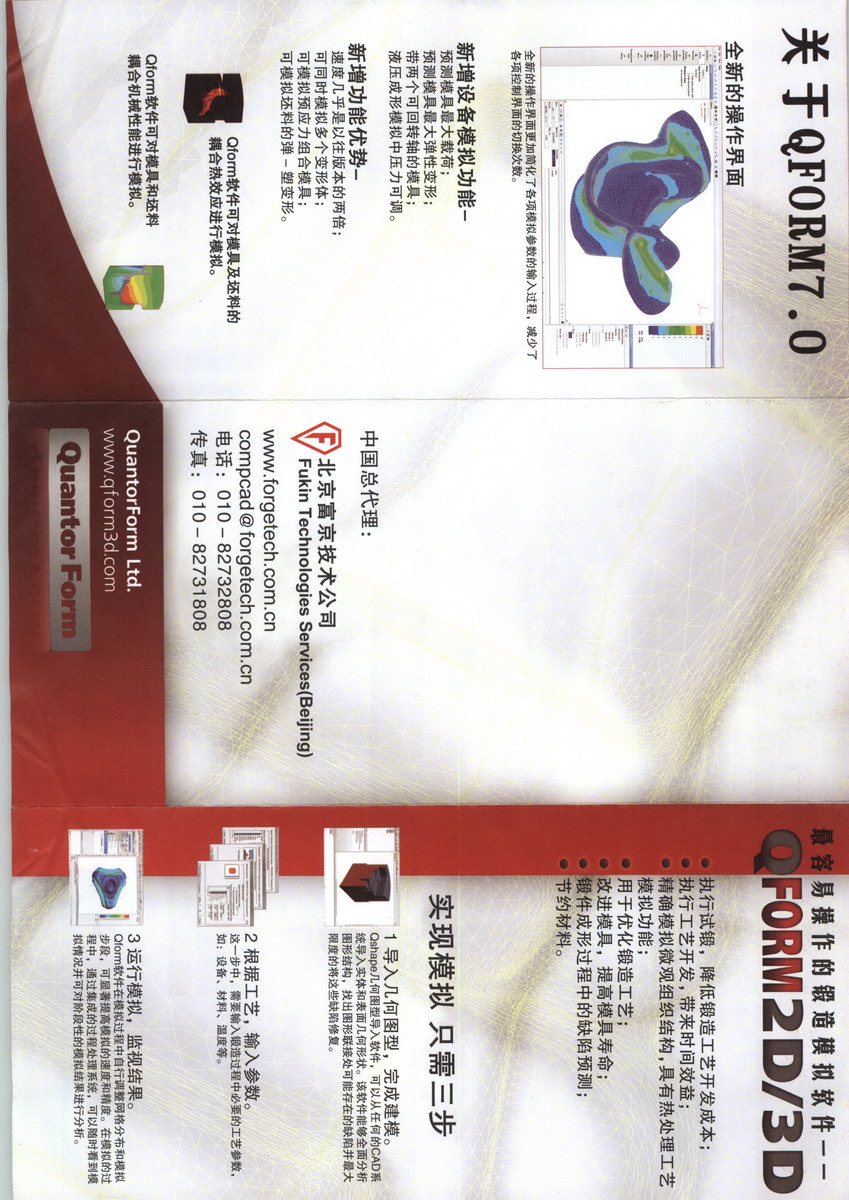 俄羅斯QuantorForm公司研發(fā)的鍛壓模擬軟件 。目前發(fā)布的最新版本為VX8.1。² 完整的鍛造工藝解決方案和完善的技術(shù)服務(wù)QFORM鍛造模擬軟件集成QFORM2D和QFORM3D模擬仿真于一身,提供了金屬體積成形的完整鍛造工藝模擬解決方案,幫助用戶解決鍛造工藝設(shè)計(jì)和優(yōu)化,模具的設(shè)計(jì)制造等技術(shù)難題,通過模擬金屬成型過程中出現(xiàn)的問題,改善并優(yōu)化模具設(shè)計(jì)制造。QFORM鍛造工藝模擬分析軟件幾乎涵蓋金屬體積成形的的鍛造工藝:如自由鍛、冷鍛、溫鍛、熱鍛、粉末成形、鐓鍛成型、型材擠壓、輥鍛、楔橫軋、輪輾、輾環(huán)等;并考慮模具壽命、熱處理工藝、微觀組織預(yù)測、工藝鏈全過程模擬分析;適合所有鍛造材料(鍛鋼、鍛鋁、銅合金、高溫合金)與設(shè)備的鍛造工藝模擬分析,并包括完備的材料數(shù)據(jù)庫和設(shè)備數(shù)據(jù)庫。QFORM鍛造工藝模擬分析適應(yīng)的設(shè)備有液壓機(jī)(鍛造液壓機(jī)、模鍛液壓機(jī)、擠壓液壓機(jī))、機(jī)械壓力機(jī)(曲柄壓力機(jī)、熱模鍛壓力機(jī)、平鍛機(jī)、冷鍛機(jī))、鍛錘(空氣錘、液壓錘、對(duì)擊錘、多錘頭壓機(jī))、螺旋壓力機(jī)(摩擦螺旋壓力機(jī)、電動(dòng)螺旋壓力機(jī)、液壓螺旋壓力機(jī)、離合式螺旋壓力機(jī))和旋轉(zhuǎn)成形設(shè)備(楔橫軋機(jī)、斜軋機(jī)、輾擴(kuò)機(jī)、輥鍛機(jī)、旋轉(zhuǎn)鍛造機(jī))。