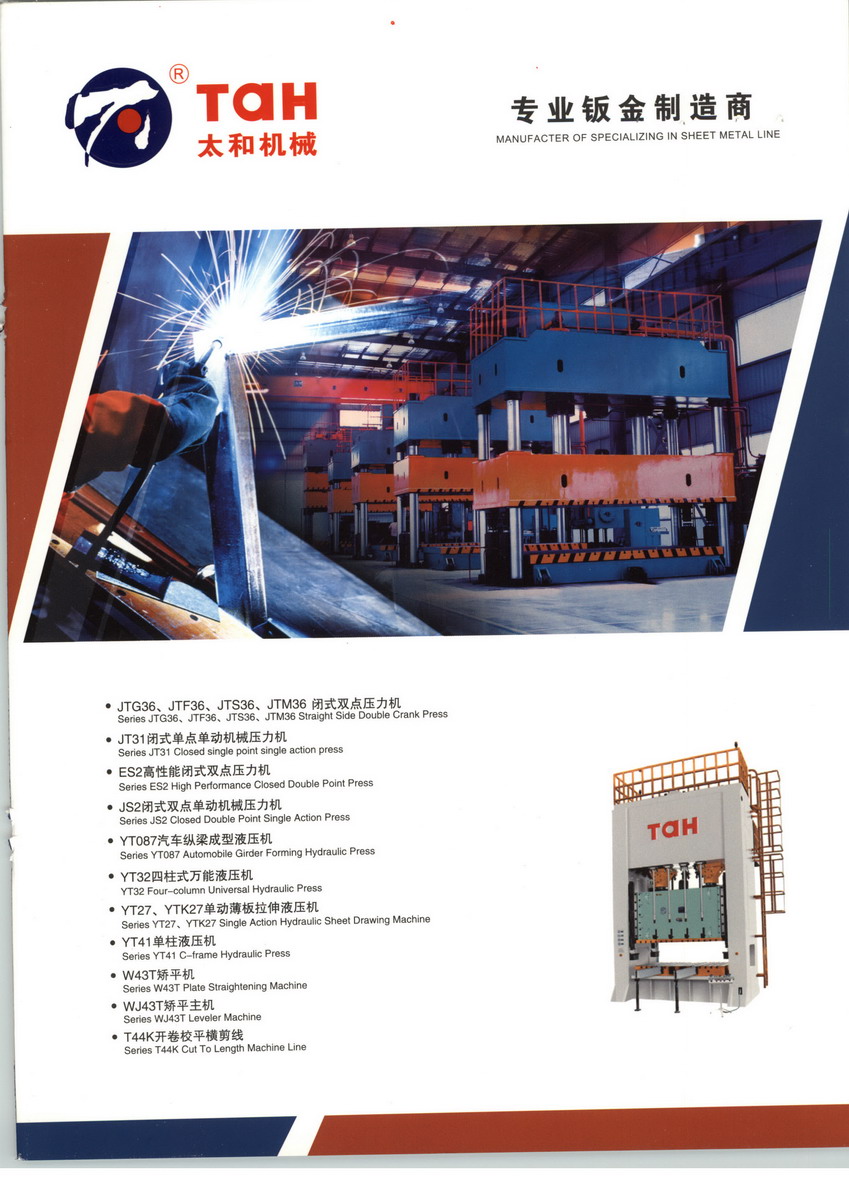 公司擁有自營進(jìn)出口權(quán),所有產(chǎn)品均獲出口許可證,生產(chǎn)的“太和牌”QC12K、QC12Y、Q11、QC11Y系列剪板機(jī);WC67K、WC67Y系列液壓數(shù)控折彎機(jī);W11S、W11卷板機(jī);THW24S型材彎曲機(jī)暢銷全國,遠(yuǎn)銷歐美,中東、南非、東南亞等三十多個國家和地區(qū)。