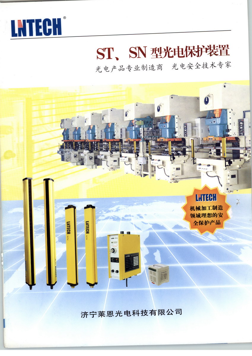 萊恩光電科技有限公司(華南)營銷中心是高起點、高標準的科技型企業(yè),主要從事光電安全產品的研發(fā)、制造和銷售,為機械加工、機械制造企業(yè)提供安全保護產品和安全技術解決方案。 專業(yè)的技術,先進的設備,成熟的工藝、完善的質量保證體系和豐富的安全保護從業(yè)經驗,是我們?yōu)槟峁﹥?yōu)質產品和服務的保證。 在現代化工廠里,人與機器協(xié)同工作,在一些具有潛在危險的機械設備上,如沖壓機械、剪切設備、金屬切削設備、自動化裝配線、自動化焊接線、機械傳送搬運設備、危險區(qū)域,易造成作業(yè)人員的人身傷害。 光電保護裝置,又稱為安全光幕、安全光柵、光電保護器,沖床安全保護器,壓力機安全保護裝置,機床安全保護器,是通過發(fā)射紅外線,產生保護光柵,當光柵被遮擋時,裝置發(fā)出遮光信號,控制具有潛在危險的機械設備停止工作,以降低作業(yè)人員在工作環(huán)境中受到傷害的可能性,有效保護作業(yè)人員的人身安全。 萊恩光電科技公司生產的光電保護裝置分為兩種類型五大系列:ST型光電保護裝置,又分為STF系列、STD系列、STQ系列 SN型光電保護裝置,又分為SNA系列、SNB系列,主要用于小型沖壓設備、剪切設備、機械加工設備、注塑機械、切紙機械、木工加工機械、立體車庫、以及其它危險區(qū)域的防護。 SN系列、ST系列光電保護裝置均具有以下特點: 1. 具有完善的自檢功能--當光電保護裝置失電或自身出現故障時,確保不向所控制的電器發(fā)出錯誤信號 2. 抗干擾能力強--對電磁信號、頻閃燈光、焊接弧光及周圍光源具有良好的抗干擾能力。 3. 使用壽命長--繼電器有效輸出次數大于100萬次,繼電器達到使用壽命后,可更換。 4. 具有良好的抗震性能--元器件焊接采用SMD技術,并有多項抗震措施。 5. 可根據用戶要求設置自保功能--當光幕被遮擋時,壓力機滑塊停止運行,再次接通光線,壓力機不能 運行,必須按動復位按鈕后,壓力機滑塊才能再次啟動。 6. 規(guī)格品種多,最大限度的滿足您的要求。 7. 結構簡單,接線方便--信號電纜采用航空插件連接。 8. 參照歐洲標準設計,安全可靠。 9. 快速響應能力--響應時間小于20ms,最大限度的避免了危險。 10.雙繼電器安全信號輸出,最大限度的增強了輸出信號的可靠性。 11.利用LED顯示工作狀態(tài)和故障狀態(tài),便于使用和故障判斷。 12.可提供NPN、PNP輸出,此時用戶應保證機械設備的后續(xù)控制電路安全可靠。 13.需要保護的區(qū)域不在一個平面時(如同時需要垂直保護和水平保護),光電保護裝置可串聯(lián)使用。 14.通用性強,對光容易。