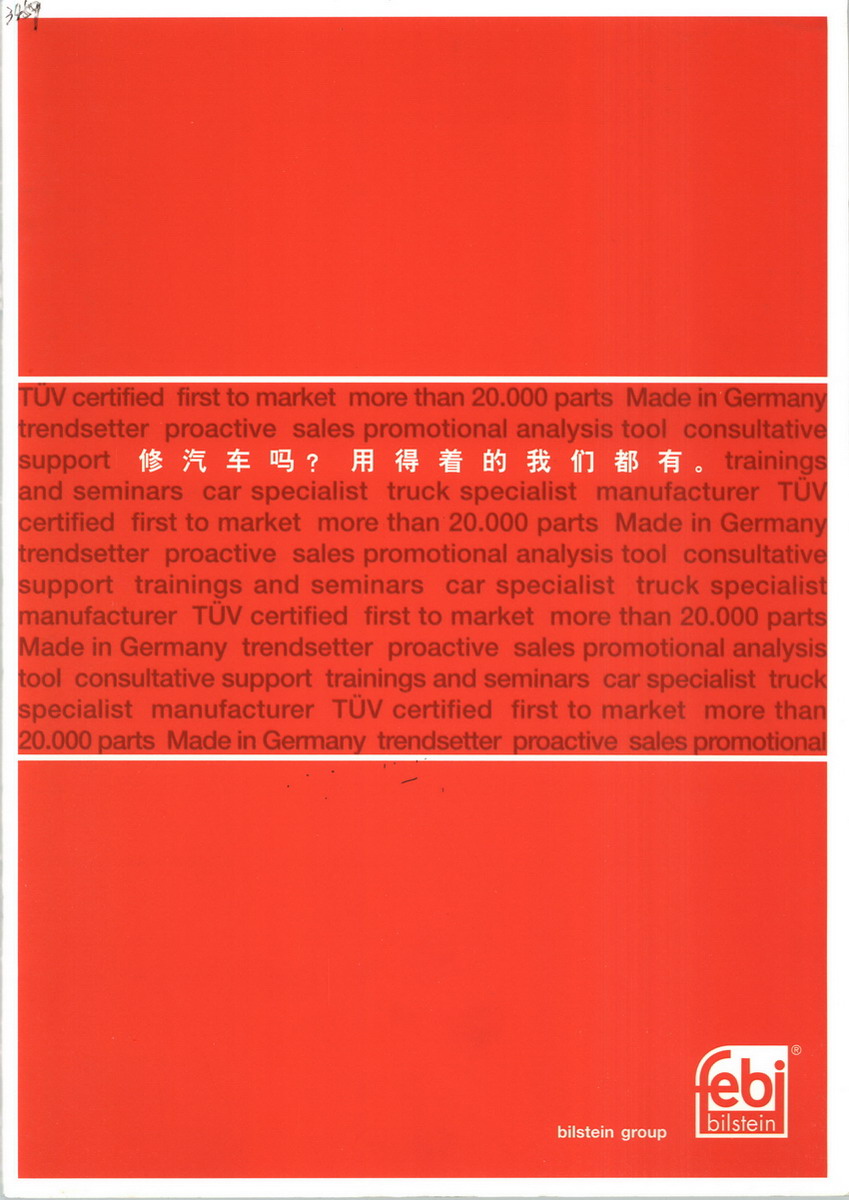 在獨立的售后市場中,febi bilstein是一家全球領(lǐng)先的乘用車和商用汽車零配件的制造商和供應(yīng)商。我們的品牌憑借其持久穩(wěn)定的質(zhì)量和可靠創(chuàng)新的服務(wù),從創(chuàng)立至今已超過170年。作為一個歷史悠久的獨立家族企業(yè),我們很自豪能夠為你提供一個日益增長和完整的產(chǎn)品系列,我們擁有30000多個專業(yè)易損件–向超過140個的國家供貨。此外,費比在超過69個國家擁有自己的分公司或本地的合作伙伴。因為時間就是效率, 所以有超過1億件的配件位于恩內(nèi)佩塔先進的物流中心內(nèi)整裝待發(fā), 隨時準備運送到整個德國乃至全球。我們專注 - 完美的產(chǎn)品系列, 原裝件的質(zhì)量從轉(zhuǎn)向,發(fā)動機,剎車,底盤和車輪緊固技術(shù), 到汽車電子,氣動技術(shù)和費比目錄擴容版–在febi bilstein,你能找到專業(yè)維修各種流行品牌和型號的乘用車,卡車,公共汽車,掛車,半掛車和輕型商用車的一切。我們與批發(fā)商和工廠創(chuàng)造強有力的伙伴關(guān)系以及堅定地致力于獨立的售后市場。而不是僅僅作為一個供應(yīng)商。作為一個制造商和供應(yīng)商,我們使用多年所積累的經(jīng)驗,先進的生產(chǎn)技術(shù),并不斷投資擴大自己的產(chǎn)品。在費比,我們攜手合作,確??蛻魸M意在我們的日常工作中,我們依靠我們最大的資產(chǎn)-保證世界各地擁有高素質(zhì)的1630多名員工,我們始終專注我們的愿望與我們客戶和合作伙伴的要求。畢竟只有通過技術(shù),速度,以及最高級別的可靠性和專注服務(wù),這樣我們才可以滿足我們的雄心,即實現(xiàn)面向未來的伙伴關(guān)系中,在整個價值鏈中獨立的售后市場。