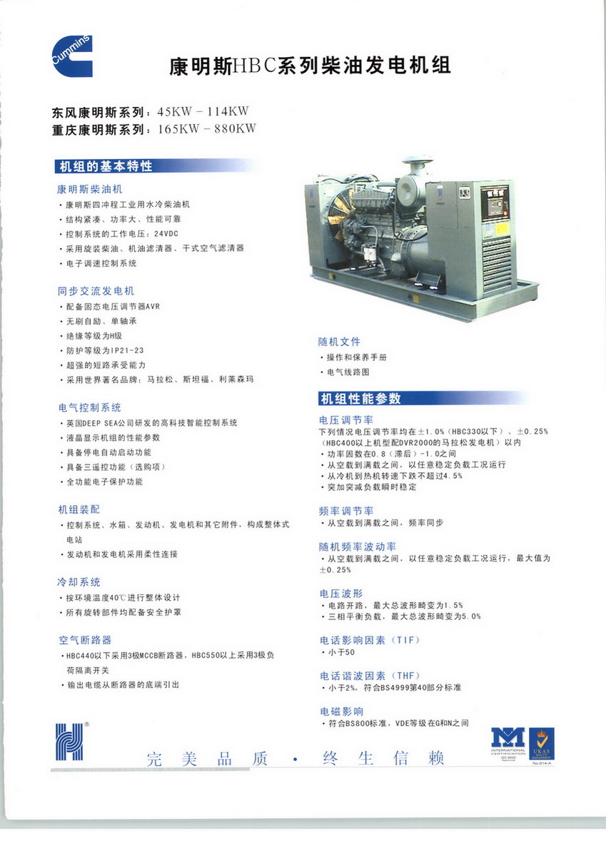 康菱投資(中國)有限公司始創(chuàng)于1992年,是中國地區(qū)專業(yè)經(jīng)營柴油發(fā)電機組的先驅(qū)之一。專業(yè)從事柴油發(fā)電機組的生產(chǎn)、銷售、安裝、維修和服務。經(jīng)過多年的發(fā)展,目前康菱投資(中國)有限公司在東莞地區(qū)擁有占地近30,000平方米的發(fā)電機組生產(chǎn)基地。在全國范圍內(nèi)擁有近30家分公司和辦事處,近30家銷售一級代理商。公司現(xiàn)有員工1000多人,其中管理人員120多名,技術人員90多名,生產(chǎn)人員150多名,售后服務人員280多名,銷售人員400多名。東莞新工廠位于中國最具發(fā)展?jié)摿Φ母咝录夹g產(chǎn)業(yè)開發(fā)區(qū)— 東莞市松山湖生態(tài)高科技工業(yè)園區(qū),占地面積20,000平方米,年生產(chǎn)能力10,000臺/套。目前,公司已和多家國際跨國公司結成戰(zhàn)略合作伙伴關系。與已有40多年發(fā)電機組生產(chǎn)歷史的新加坡PANEXP集團合作,進口CUMMINS、PERKINS等系列發(fā)電機組整機;與世界五大發(fā)電機組制造商之一的VISA集團合作,代理銷售原裝進口CUMMINS、PERKINS、MTU、DEUTZ、MAN等系列發(fā)電機組。公司和康明斯、鉑金斯、斗山大宇、斯坦福、馬拉松、利萊森瑪、上柴股份等國際、國內(nèi)著名的發(fā)動機、發(fā)電機生產(chǎn)廠商建立了長期友好的合作關系,并成為他們在中國地區(qū)指定的OEM成套商。公司積極開展了多項新產(chǎn)品的研發(fā)工作,其中與中國南車集團資陽柴油機廠和中國北車集團永濟電機廠聯(lián)合開發(fā)的HBY系列火車機車柴油發(fā)電機組,具有功率大、性價比高、安全可靠、使用維護方便等優(yōu)點,是缺電地區(qū)、廠礦、醫(yī)院、房地產(chǎn)等用戶的最佳選擇之一。公司于2000年10月通過了英國UKAS ISO:9000質(zhì)量體系認證,于2004年底通過了ISO:9001-2000版的換版認證2002年獲得廣東省科技廳頒發(fā)的民營科技企業(yè)稱號;2005年5月獲得了中華人民共和國信息產(chǎn)業(yè)部的電信入網(wǎng)許可證;2005年7月通過了國家內(nèi)燃機發(fā)電機組質(zhì)量監(jiān)督檢驗中心的質(zhì)量檢查;2005年10月榮獲中國中輕產(chǎn)品質(zhì)量保障中心頒發(fā)的合格證書及牌匾。2006年2月榮獲了2005年度東莞市萬江區(qū)優(yōu)秀民營科技企業(yè)稱號。多年來,對品質(zhì)、價格、服務三方面的和諧統(tǒng)一是全體康菱人的執(zhí)著追求,并換來了眾多客戶的盛情回饋!衷心感謝中國電信、中國移動、中國石油、中海殼牌、中國煙草、中國國家投資公司、中國水利部、中國出入境檢驗檢疫局、中國國家軍委、中國國家公安部、美的集團、浪莎集團、中興通訊、富力地產(chǎn)、鹽城高速;美國沃爾瑪、高露潔、箭牌、喜來登、百事可樂、德爾福、德國DHL、法國湯姆遜、芬蘭NOKIA、瑞士LONZA、日本National、Canon、SANYO、TOYOTA、HONDA、韓國三星、韓國艾利和、泰國正大集團 、臺灣富士康集團、臺灣光寶集團等知名客戶對我們的支持和信賴!