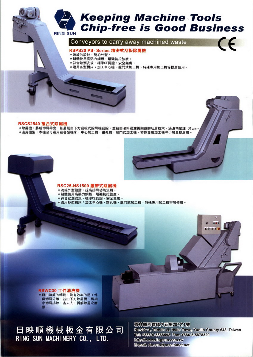 日映順機(jī)械板金有限公司在專業(yè)領(lǐng)不斷鑽研精進(jìn),累積了二十年的技術(shù)及經(jīng)驗(yàn),日映順可以說是「排屑機(jī)的專家」! 1984年5月成立的映順企業(yè)社,於1997年改名為日映順機(jī)械板金有限公司,廠房約500坪,員工人數(shù)16人。 自1984創(chuàng)立至今,從最初僅研發(fā)履帶式排屑機(jī)鏈條功能、到今日完成二代零件清洗工件機(jī),客戶的任何需求,都可在最短的時間內(nèi),精確且完善的獲得解決方案,有效的提升產(chǎn)品品質(zhì),節(jié)省時間、金錢成本。嚴(yán)謹(jǐn)?shù)钠焚|(zhì)管制、優(yōu)異的功能性,加上準(zhǔn)時交貨誠信及高度服務(wù)熱忱,使得福裕事業(yè)股份有限公司、綺發(fā)機(jī)械工廠股份有限公司、遠(yuǎn)東機(jī)械股份有限公司…等機(jī)械大廠,都成為日映順長期合作的客戶。 日映順始終堅(jiān)持品質(zhì)第一、研發(fā)創(chuàng)新、服務(wù)至上的信念,為客戶提供更完善、更精準(zhǔn)的服務(wù)。