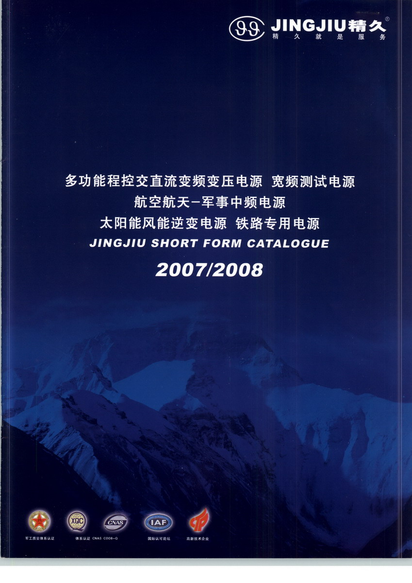 公司主要產(chǎn)品有JJN01系列軍用油機(jī)逆變電源、JJNO2系列軍用行車自發(fā)電系統(tǒng)、JJT01系列軍用電機(jī)電壓調(diào)節(jié)器、JJHJY系列航空-軍 事專用電源、JJZ系列可編程中頻電源、98系列交流變頻變壓電源、99系列交流變頻變壓電源、JJ10系列可編程變頻電源、JJ03多功能交 直流變頻變壓電源、JJ05系列寬頻測試電源、JJTLY系列鐵路信號專用電源、JJCY系列船用變頻岸電電源 、SungIow系列太陽能并網(wǎng)逆變電源、JJAZY-1安全性能綜合測試儀等十四大類、共計上百個規(guī)格型號,產(chǎn)品廣泛應(yīng)用于航空航天國防軍工、機(jī)車艦船、地空通訊、自動、控制、科研實(shí)驗、質(zhì)量監(jiān)督檢測、家用電器和進(jìn)口設(shè)備等國防建設(shè)、社會生產(chǎn)及生活服務(wù)的各個領(lǐng)域,同時不斷加強(qiáng)與國際知名公司合作 ,使產(chǎn)品走出國門,遠(yuǎn)銷歐美和東南亞市場。